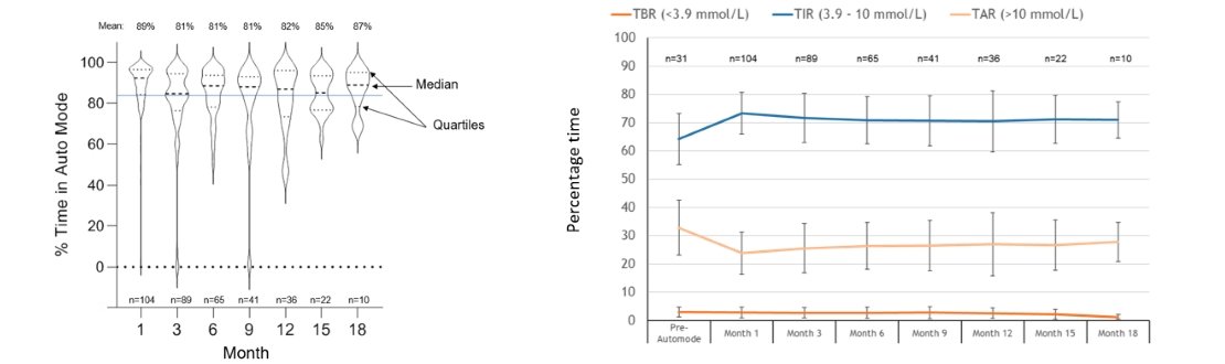 In a recent study the time in Auto Mode decreased from 74% to 35% in the first year after starting on the 670G HCL system.