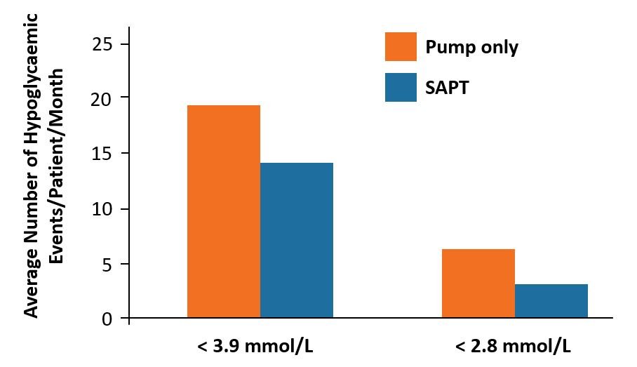 Sensor-augmented pump treatment (SAPT) combines continuous glucose monitoring with an insulin pump. In an ongoing study we have initiated SAPT in about 50 young people with type 1 diabetes, to analyze the effects of initial training and coaching on the ability of people with diabetes to properly use these devices.