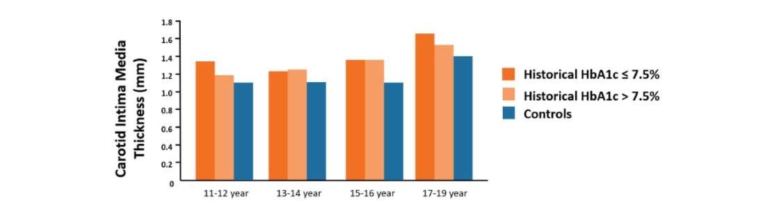 The researchers performed a cross-sectional analysis in 77 people with type 1 diabetesand 118 healthy controls (age range 11-19 years). The impact of current and past HbA1c values, and other factors, was investigated in a retrospective follow-up cohort study.